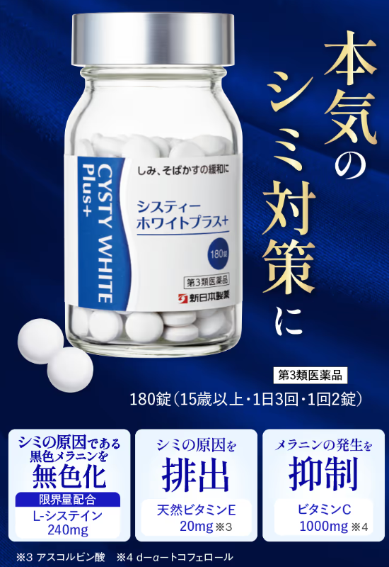 3. シミを対策するなら医薬品のシスティホワイト+はご存じでしたでしょうか?